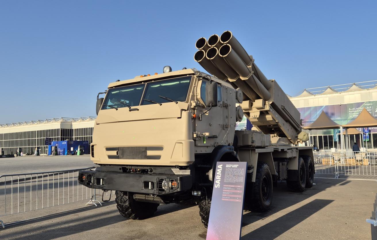 «Рособоронэкспорт» презентовал реактивную систему залпового огня «Сарма» на международной выставке World Defense Show 2026 в Саудовской Аравии. По данным ТАСС, установка уже проходит испытания в зоне боевых действий, а в Эр-Рияде она дебютировала в составе единого разведывательно-ударного комплекса.